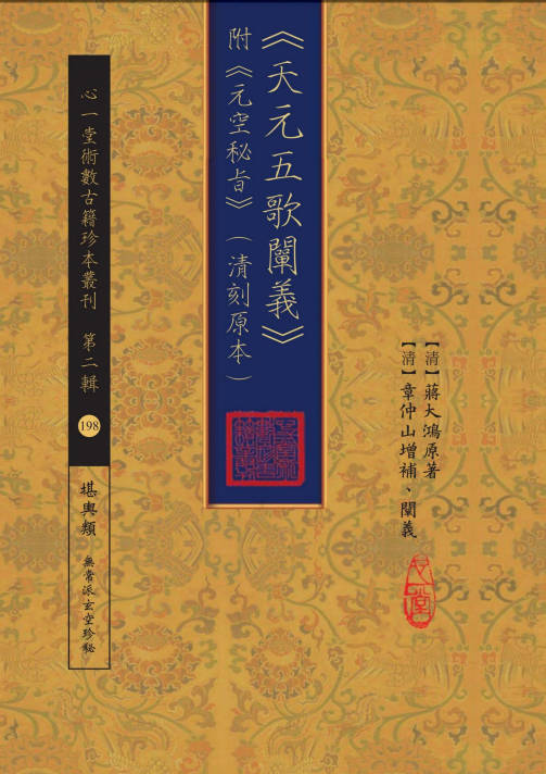 《天元五歌》是清代堪舆名家蒋大鸿所著的风水学经典,属于玄空风水的核心文献之一。该书是对《天元五歌》的注释、阐发和解读之作。蒋大鸿的原文深奥,多隐晦之术语,故后人通过“阐义”来揭示其真义。