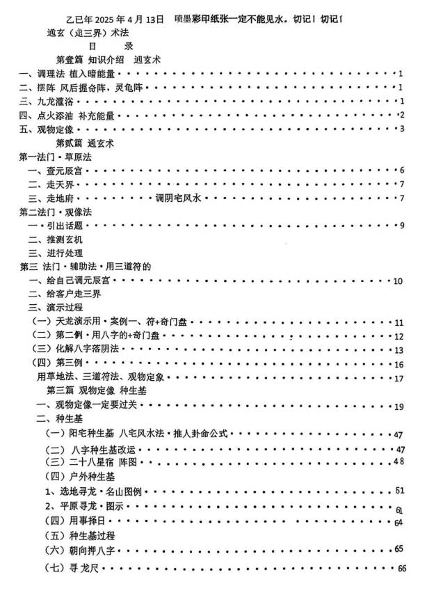 于城道 观落阴 25年4月面授《通玄落阴绝密资料走三界秘本高级法门》彩色70页.PDF电子版