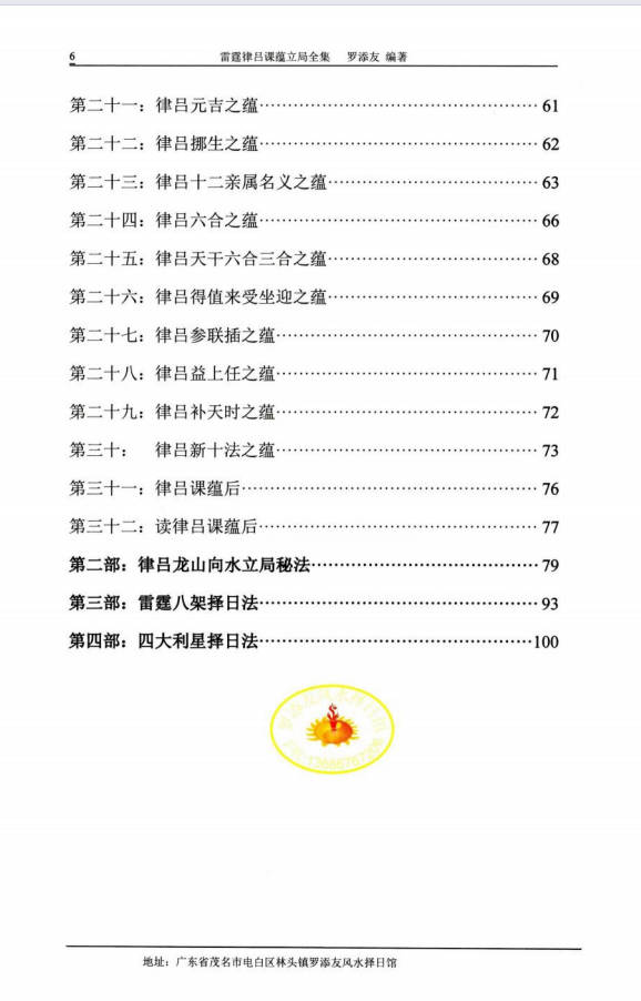 罗添友《律吕课蕴立局全集》龙山向水立局秘法择日法,家传律吕龙山向水立局秘法、师传雷霆八架择日法、师传四大利星择日法、崔腾云手抄本《律吕课蕴》