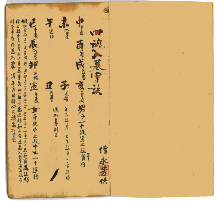 《厝地六十年避忌老本》共95页,清代老法师僧永芳秘传,风水择日相关古籍。内容包含:四魂入墓掌诀、禳制重丧法、六十年亡命避忌吉凶、寸土无光、冷退空亡,入地空亡,地虎食尸、论亡人转煞起灾殃法诀、入椁空亡、纳音歌诀、斩草破土、十恶大败日、入宅归大凶日等。