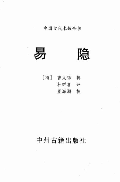 百度网盘分享 中国古代术数全书曹九锡著 董海潮校《易隐》315页.PDF电子版 《易隐》是明代易学著作,主要围绕卜筮(占卜)这一分类展开,属于象数易学中的实用技术体系。其内容深度融合了传统易学、五行学说、纳甲筮法、神煞系统等,构建了一套复杂的占断体系。属于实用占卜手册 部分页面截图 部分页面截图 部分页面截图 部分页面截图 部分页面截图 部分页面截图 本站为纯分享资源站点,仅提供一个观摩学习的环境,网站内所有资源仅供学习交流之用,版权均归原作者所有,本站将不对任何资源负法律责任。若无意中侵犯到您的版权利益,请来信联系我们,我们会在收到信息后会尽快给予处理!