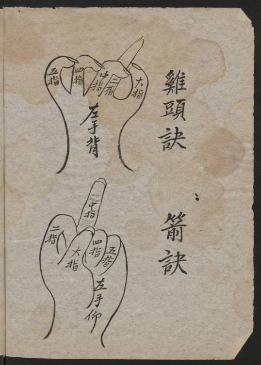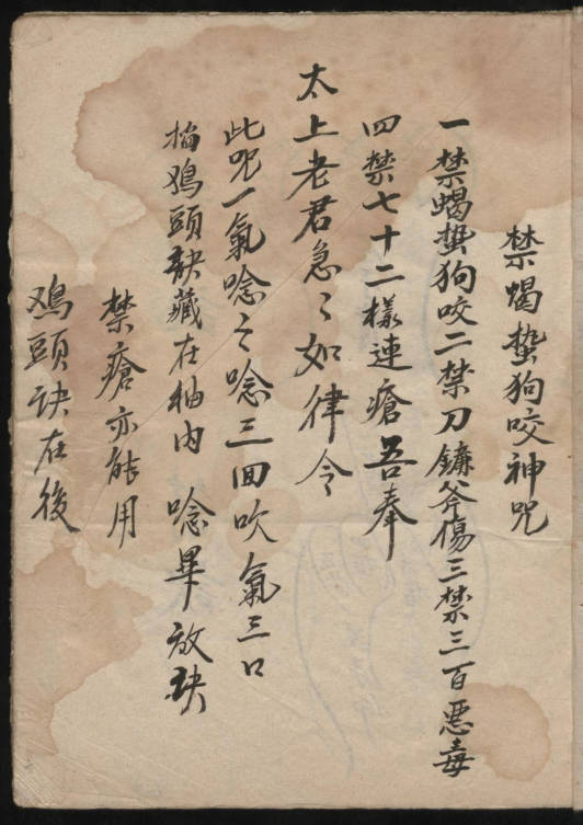 内容:治诸骨刺喉,雪山咒,除邪神咒,收蚊虫咒,催生咒,节骨神咒,卜神咒,粧脏法,迷魂神咒,解冤咒等。