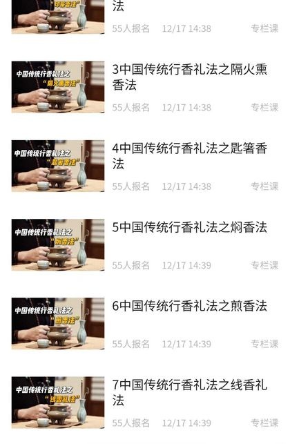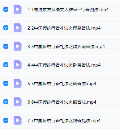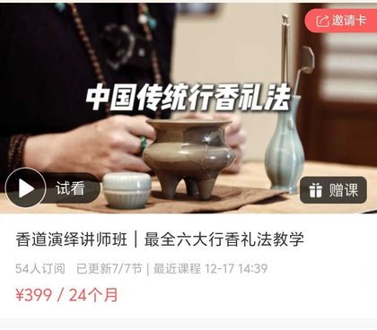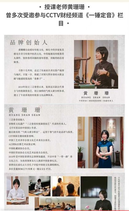百度网盘分享:黄珊珊《香道演绎讲师班|最全六大行香礼法教学》7集视频 【课程目录】 1 1走进东方浪漫文人雅香–行香四法.mp4 2 2中国传统行香礼法之印篆香法.mp4 3 3中国传统行香礼法之隔火熏香法.mp4 4 4中国传统行香礼法之匙箸香法.mp4 5 5中国传统行香礼法之焖香法.mp4 6 6中国传统行香礼法之煎香法.mp4 7 7中国传统行香礼法之线香礼法.mp4 本站为纯分享资源站点,仅提供一个观摩学习的环境,网站内所有资源仅供学习交流之用,版权均归原作者所有,本站将不对任何资源负法律责任。若无意中侵犯到您的版权利益,请来信联系我们,我们会在收到信息后会尽快给予处理!