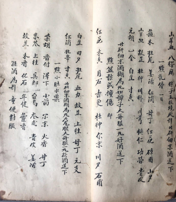内容包含有:千金移痛散、上元活血丹、黄金丹、接骨末药方、百医食药方、饮药性、草药性、開竅药方、破气药方、止痛药性、手上药性、腰上药性、洗眼方、頭目药性、眼目疼痛神验方、化血清水丹、破血破气方、消風散、跌打推拿回生隂图等等。
