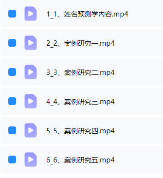 百度网盘分享:梅花五瓣开《2025年姓名预测学》视频课6集 【课程目录】 1_1、姓名预测学内容.mp4 2_2、案例研究一.mp4 3_3、案例研究二.mp4 4_4、案例研究三.mp4 5_5、案例研究四.mp4 6_6、案例研究五.mp4 本站为纯分享资源站点,仅提供一个观摩学习的环境,网站内所有资源仅供学习交流之用,版权均归原作者所有,本站将不对任何资源负法律责任。若无意中侵犯到您的版权利益,请来信联系我们,我们会在收到信息后会尽快给予处理!