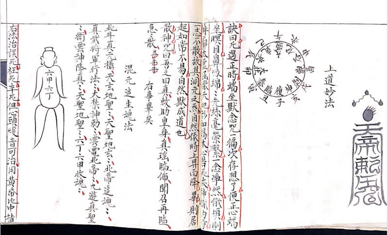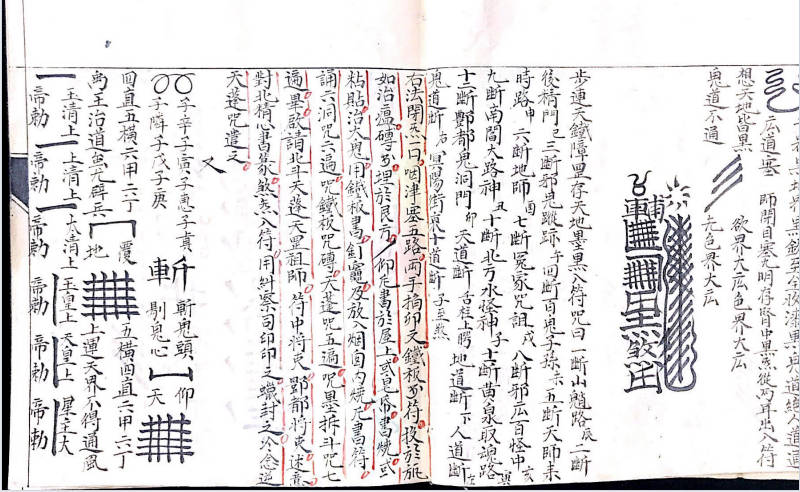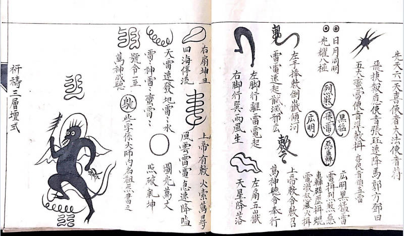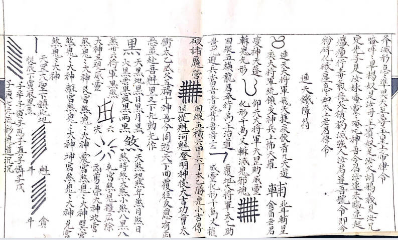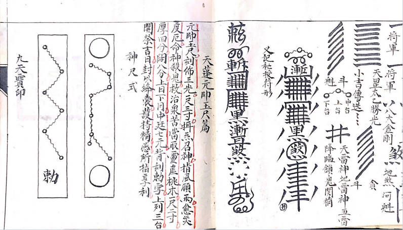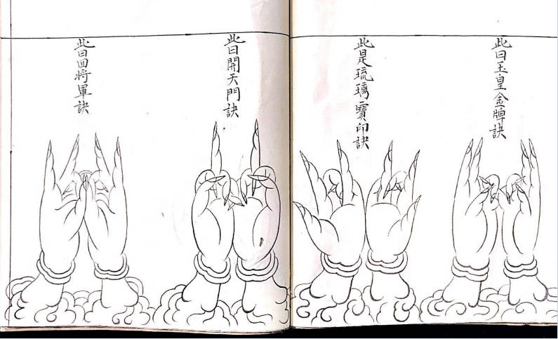 《符秘掌诀秘旨》,内有讲连天鐵障符,天蓬元帅玉尺篇,朝真祝尺式,神尺法式,造元帅帝鍾,鐵柱符式,上道妙法,混元追生魂法,木郎野祭雷神秘法,二十八宿图,夲郎咒解,百化雷符,斗宿召雷图,火輪真符,天蓬元帅咒行持秘旨,元帅真形,令牌式,追邪巫符式,上章吉日,86种掌诀图等,106个单页。