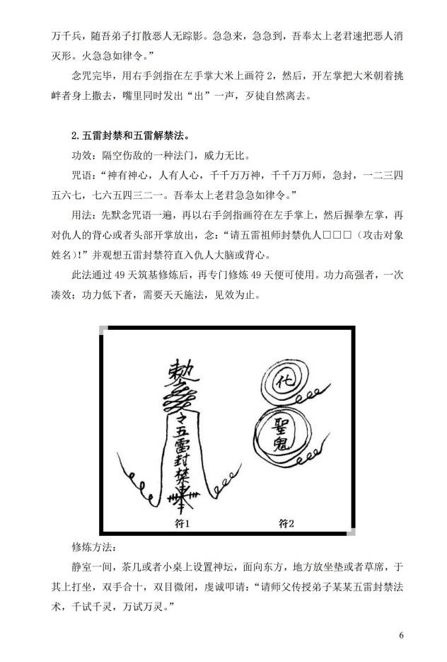 简介:请师修炼,神武灵拳,驱恶法,五雷封禁和五雷解禁法,五雷掌,防打,反打,寄打,神箭术,金蝉脱壳,追赶坏人,远程惩恶,影打,治病救人止血法,治发烧和发冷法,解酒法,化骨法,人缘和睦封口法,人缘促进法,家庭和睦防外遇法,夫妻和合,防盗迷魂/法,催失踪者回家,催债法,戒赌/法,解法