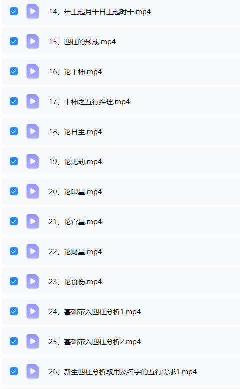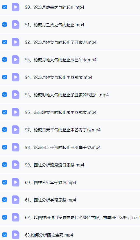 百度网盘分享:四品《四柱八字系统教程》视频课63集,7小时26分