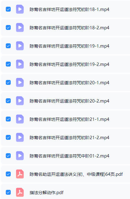 百度网盘分享: 陈宥名《开运道法符咒初阶课程+讲义+指法分解动作》 部分内容截图 部分内容截图 部分内容截图 部分内容截图 部分内容截图 部分内容截图 部分内容截图 本站为纯分享资源站点,仅提供一个观摩学习的环境,网站内所有资源仅供学习交流之用,版权均归原作者所有,本站将不对任何资源负法律责任。若无意中侵犯到您的版权利益,请来信联系我们,我们会在收到信息后会尽快给予处理!