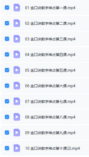 百度网盘分享:玄宗金口诀数字神占系列视频课程,十节课每课时60分钟以上。报几个数字起课断课,来源于道家灵机秘法,方法灵活简单,精准度高,录制好的十节课讲课视频,原价1280元 温馨提示:你目前看到的图片是截屏图片,原资料清晰度会更高 课程截图 课程截图 课程截图 课程截图 课程截图 课程截图 本站为纯分享资源站点,仅提供一个观摩学习的环境,网站内所有资源仅供学习交流之用,版权均归原作者所有,本站将不对任何资源负法律责任。若无意中侵犯到您的版权利益,请来信联系我们,我们会在收到信息后会尽快给予处理!