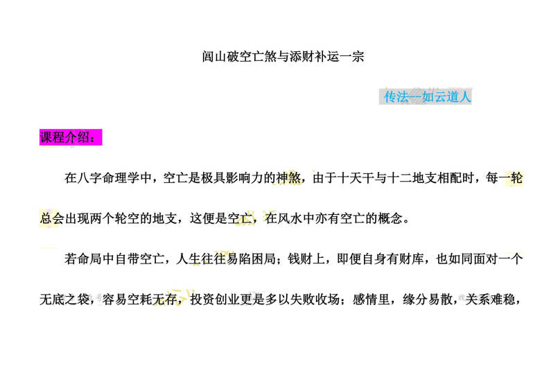 百度网盘分享:如云道人《闾山破空亡煞与添财补运》音频+课件