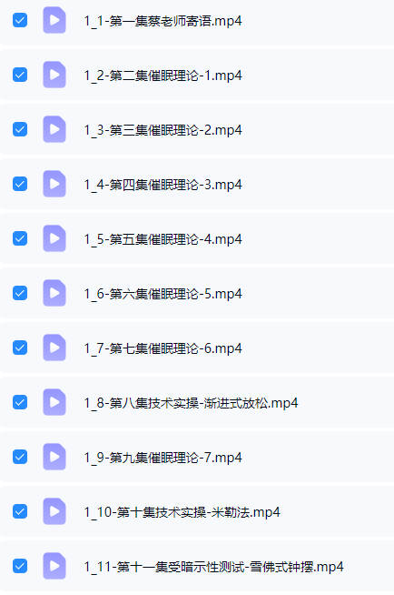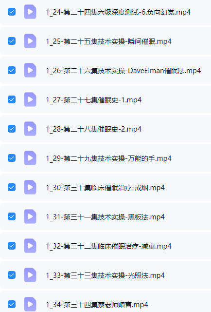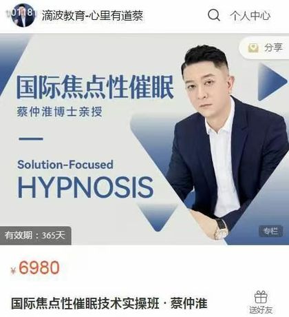 百度网盘分享:【催‮课眠‬程】蔡仲淮《国际焦点性催眠技术实操班》视频课34集