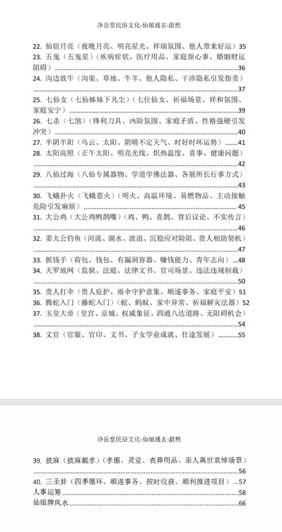 百度网盘分享:民间秘法《仙娘教秘法》29双页+77页 2册.PDF电子版 《仙娘教秘法》仙娘牌卦术续 仙娘教仙娘通玄,民间秘法相关书籍。仙娘教是一种源于中国西南地区的民间信仰与法术体系,具有深厚的历史文化背景和独特的实践传统。 温馨提示:你目前看到的图片是截屏图片,原资料清晰度会更高 部分内容截图 部分内容截图 部分内容截图 部分内容截图 部分内容截图 部分内容截图 部分内容截图 本站为纯分享资源站点,仅提供一个观摩学习的环境,网站内所有资源仅供学习交流之用,版权均归原作者所有,本站将不对任何资源负法律责任。若无意中侵犯到您的版权利益,请来信联系我们,我们会在收到信息后会尽快给予处理!