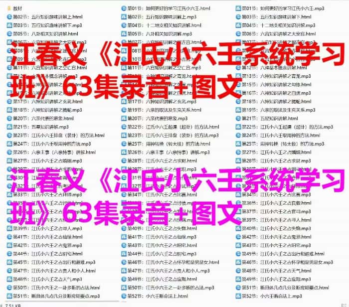 百度网盘分享:江春义《江氏小六壬系统学习班》63集音频课+课件文档+教材2本